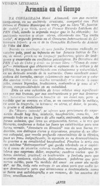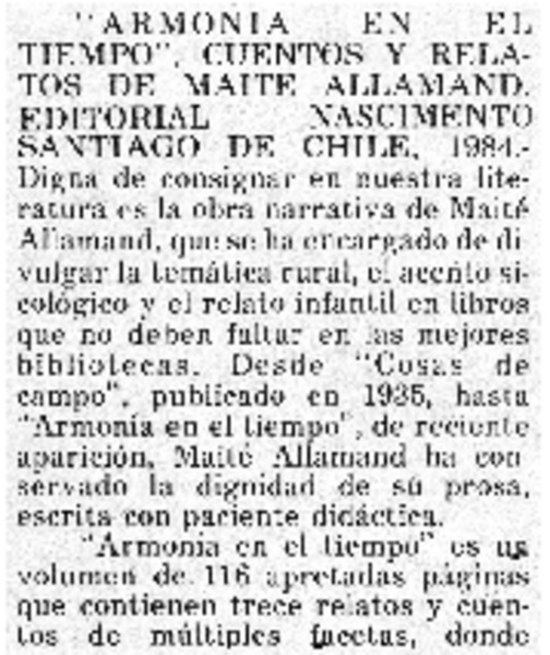 Autoras chilenas - Allamand, Maité - Armonía en el tiempo