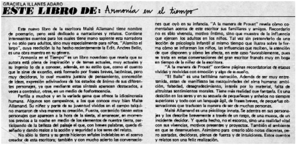 Este libro de, Armonía en el tiempo [artículo] Graciela Illanes Adaro.