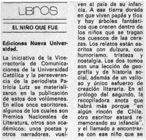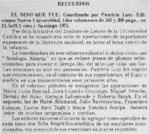 Allamand, Maité - Guzmán Cruchaga, Juan - Bombal, María Luisa - Autores chilenos - Niño que fue