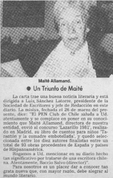 Maité Allamand para niños y grandes [artículo] Hernán Poblete Varas.