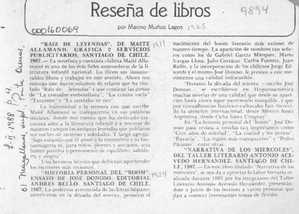 Reseña de libros [artículo] Marino Muñoz Lagos.