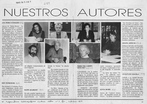 Autoras chilenas - Autores chilenos - Morel, Alicia - Solar, Hernán del - Paz, Marcela - Allamand, Maité - Alonso, Carmen de