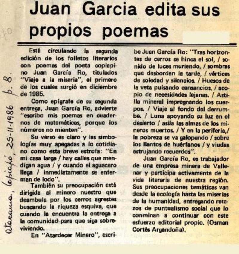 Juan García edita sus propios poemas [artículo].