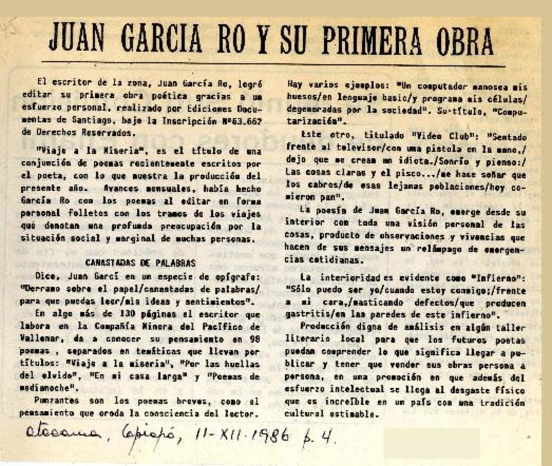 Juan García Ro y su primera obra [artículo].