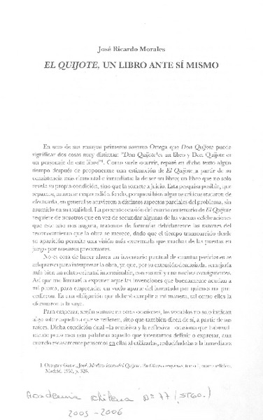 El Quijote, un libro ante sí mismo [artículo]José Ricardo Morales.