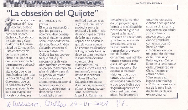 "La obsesión del Quijote" [artículo]Carlos René Ibacache.