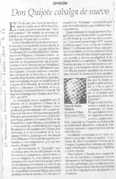 Don Quijote cabalga de nuevo [artículo] Eduardo Godoy Gallardo
