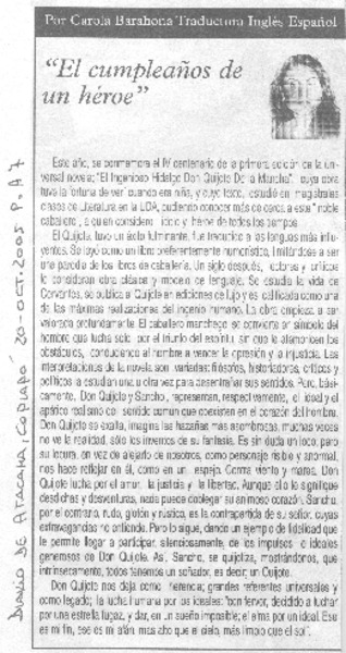 El Cumpleaños de un héroe. [artículo] Carolina Barahona