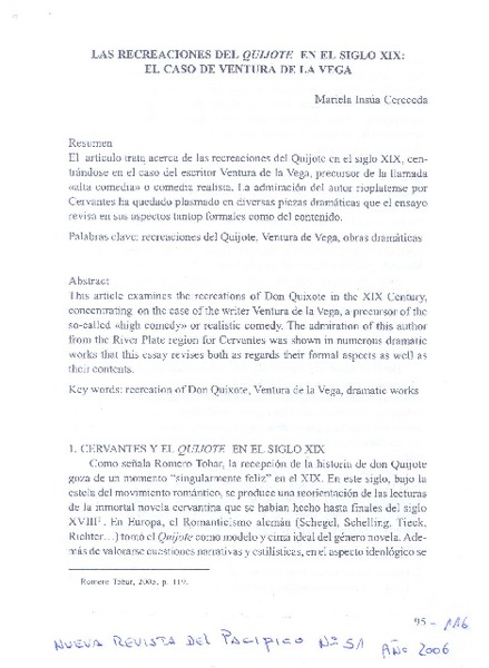 Las recreaciones del Quijote en el siglo XIX: el caso de Ventura de la Vega [artículo]Mariela Insúa Cereceda.
