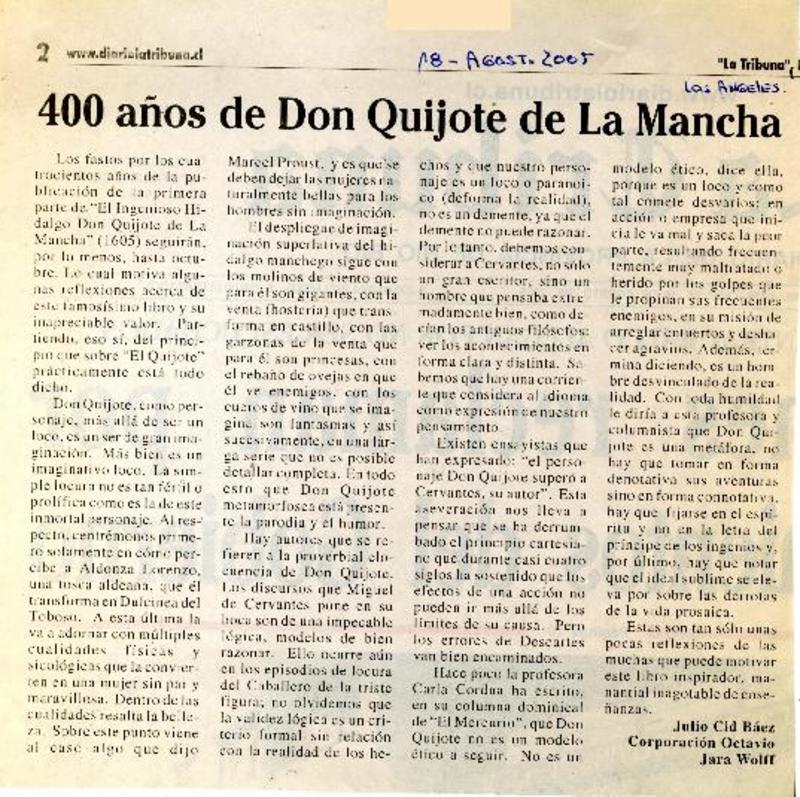 Cervantes, 400 años después [artículo] Braulio Fernández Biggs.