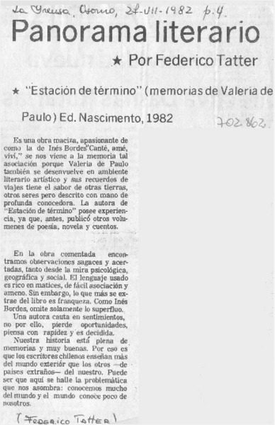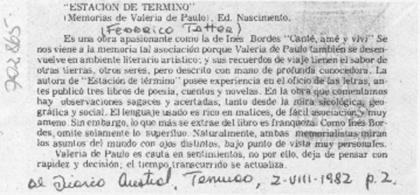 Autores chilenos - Paulo, Valeria de - Estación de término