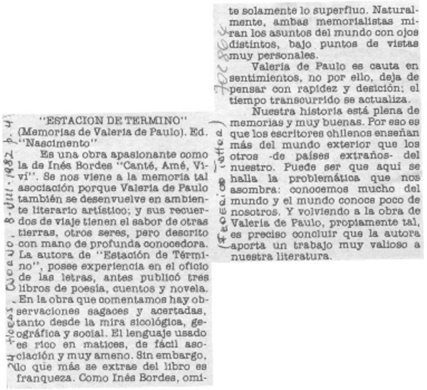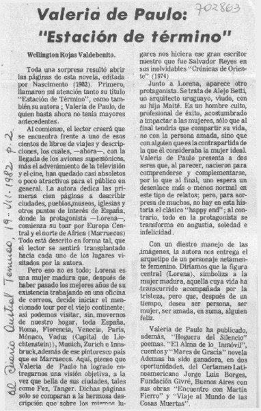 Valeria de Paulo: "estación de término" [artículo] Wellington Rojas Valdebenito.