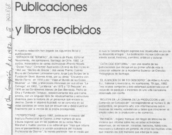 Jauch, Emma - Pequeña celebración - Abundante mundo - Paulo, Valeria de - Mendoza Belio, Tulio Hernán - Autores chilenos - Estación de término