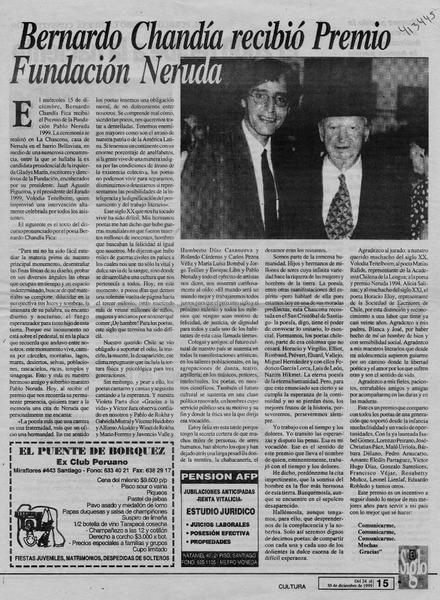 Bernardo Chandía recibió Premio Fundación Neruda [artículo]