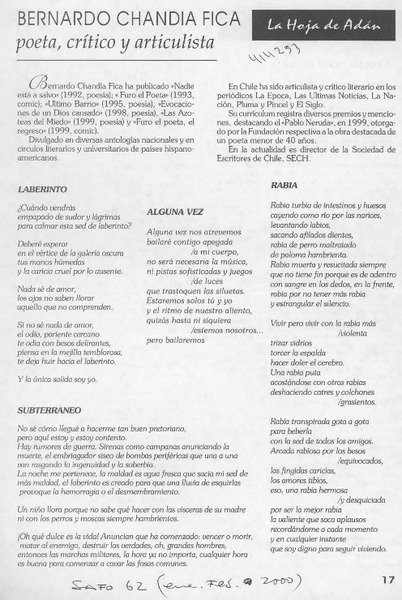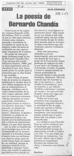 La poesía de Bernardo Chandía [artículo] Julio Espinosa.