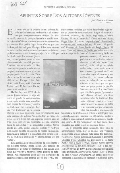 Apuntes sobre dos autores jóvenes [artículo] Jaime Lizama.