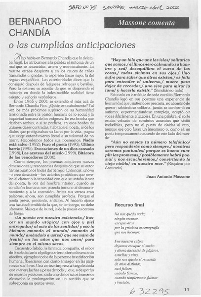 Bernardo Chandía o las cumplidas anticipaciones [artículo] Juan Antonio Massone