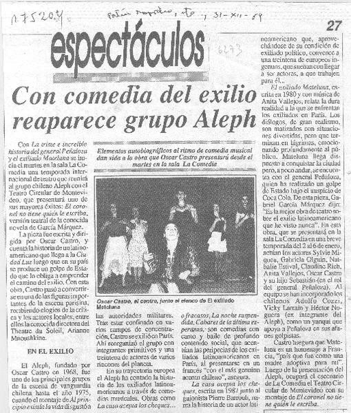Con comedia del exilio reaparece grupo Aleph [artículo].