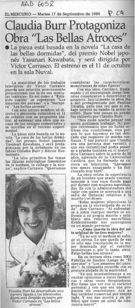 Claudia Burr protagoniza obra "Las bellas atroces" [artículo].