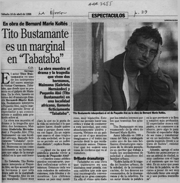 Tito Bustamante es un marginal en "Tabataba" [artículo] C. O.