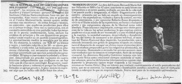 "Blue moon" o tecno teatro [artículo] Carmen Mera O.
