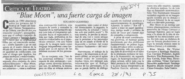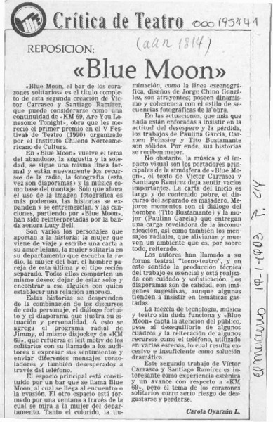 "Blue moon", una fuerte carga de imagen [artículo] Eduardo Guerrero.