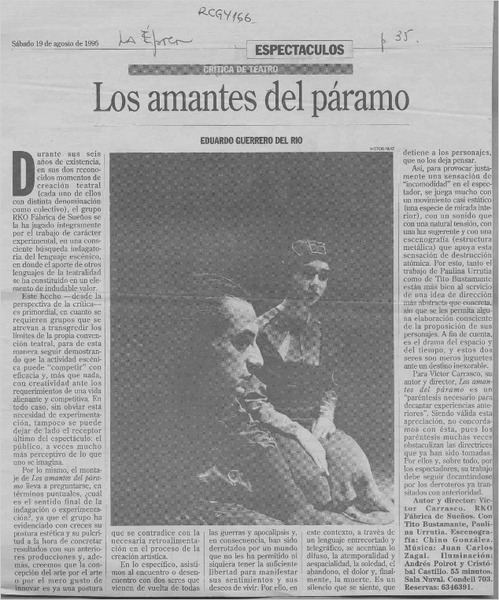 Los amantes de páramo [artículo] Eduardo Guerrero del Río.