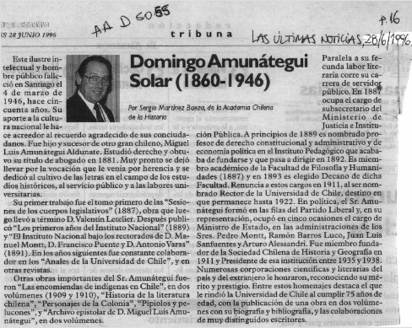 Domingo Amunátegui Solar (1860-1946) [artículo] Sergio Martínez B.
