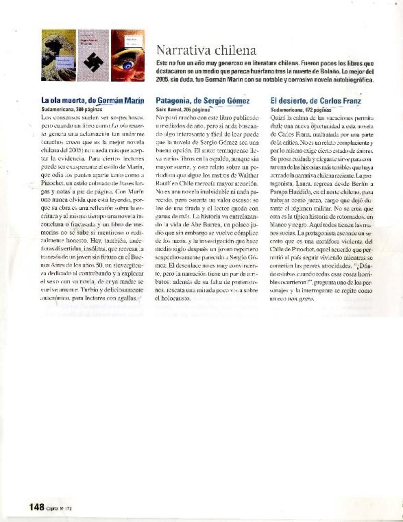 Autores chilenos - Marín, Germán - Franz, Carlos - Patagonia - Gómez, Sergio - Desierto - Ola muerta