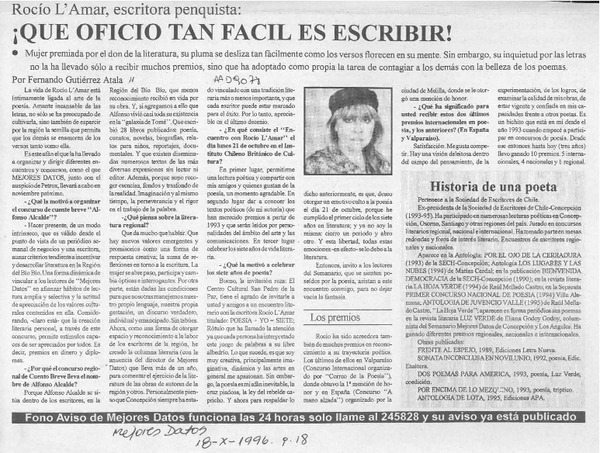 Que oficio tan fácil es escribir [artículo] Fernado Gutiérrez Atala.