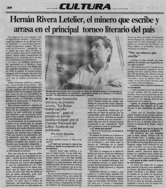Hernán Rivera Letelier, el minero que escribe y arrasa en el principal torneo literario del país [artículo] Javier Ibabache.
