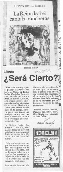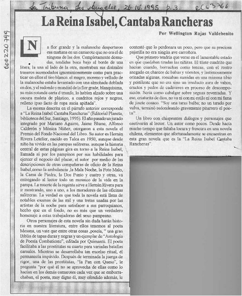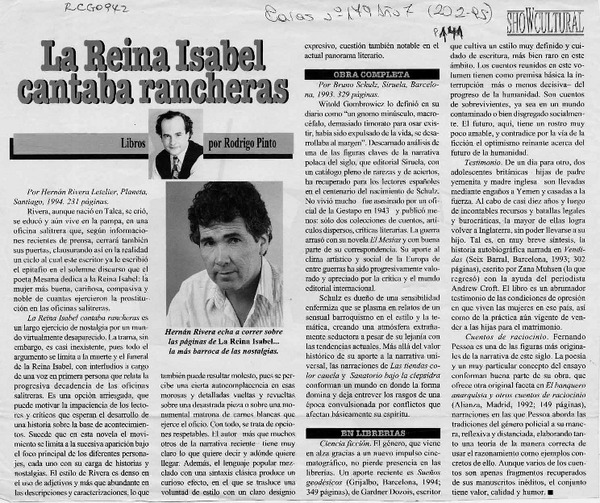 "La Reina Isabel cantaba rancheras" [artículo] Ramón Díaz Eterovic.