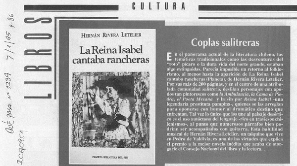 La Reina Isabel cantaba rancheras [artículo] Ramón Riquelme.
