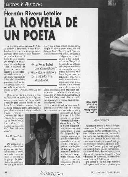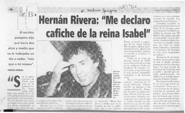 Hernán Rivera, "Me declaro cafiche de la reina Isabel" [artículo] Bárbara Araneda.