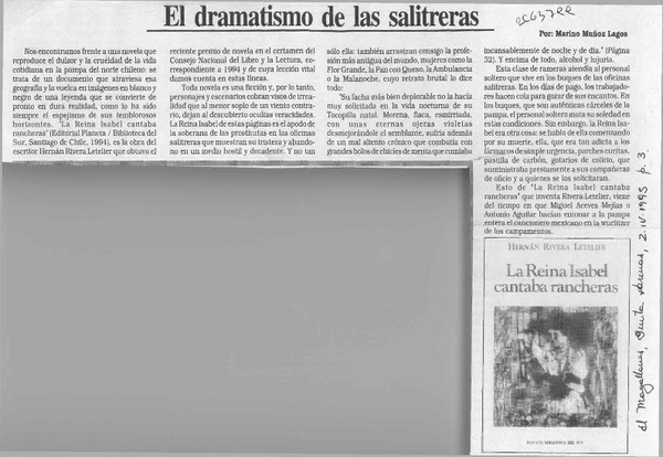 El dramatismo de las salitreras [artículo] Marino Muñoz Lagos.