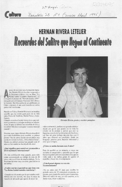 Latinoamérica conocerá a Hernán Rivera [artículo].
