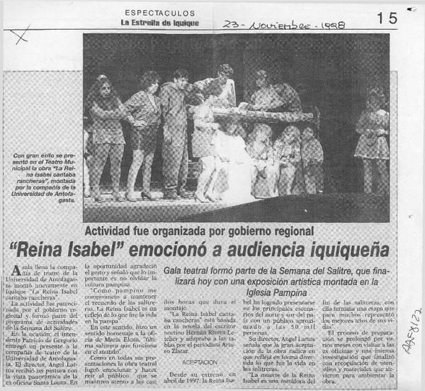 "Reina Isabel" emocionó a audiencia iquiqueña [artículo].