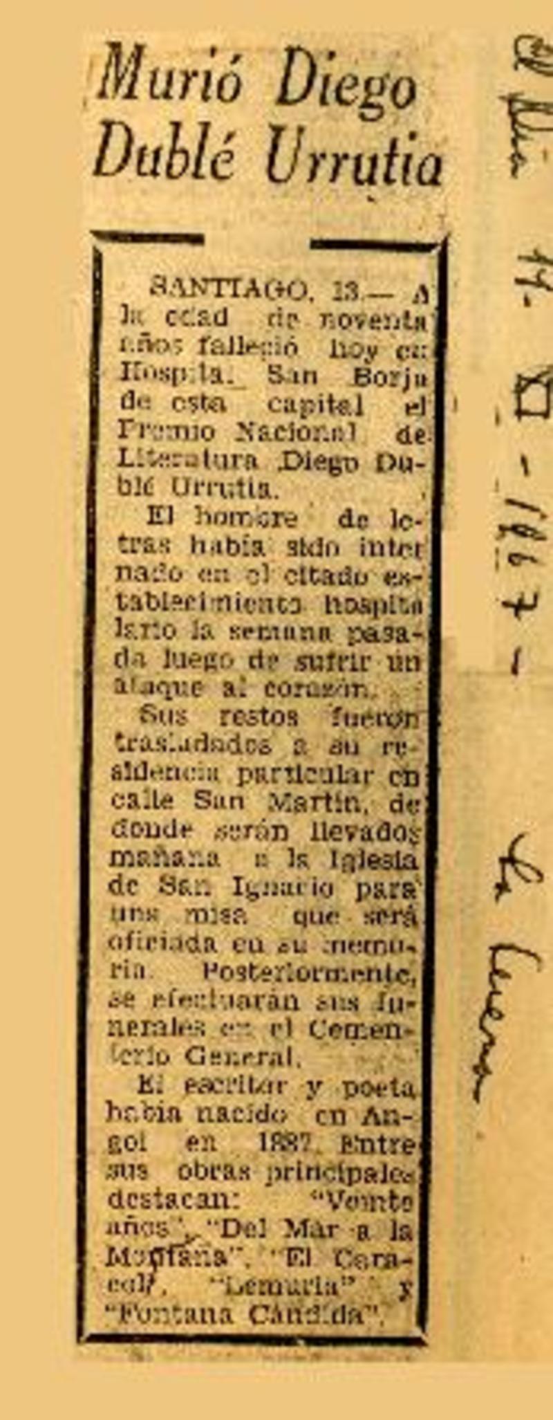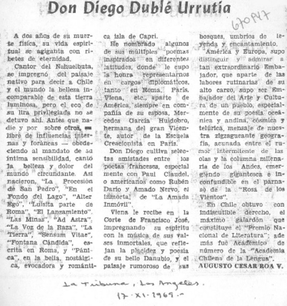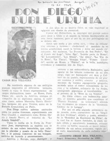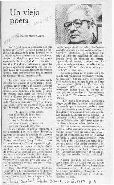 Falleció el ilustre poeta Don Diego Duble Urrutia. [artículo]