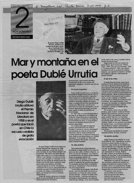 Mar y montaña en el poeta Dublé Urrutia [artículo] Marino Muñoz Lagos.
