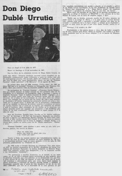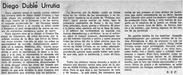 Diego Dublé Urrutia, presencia de escritor [artículo] León Santoro Funes.