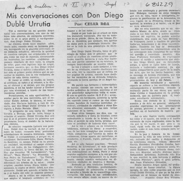 Mis conversaciones con don Diego Dublé Urrutia. [artículo] César Roa.