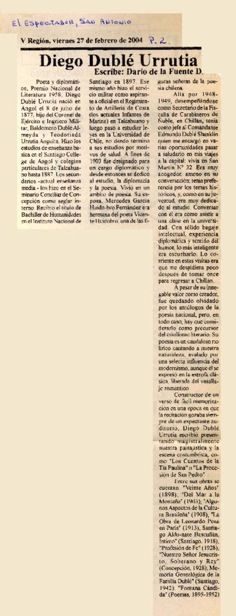 Diego Dublé Urrutia [artículo] Darío de la Fuente.