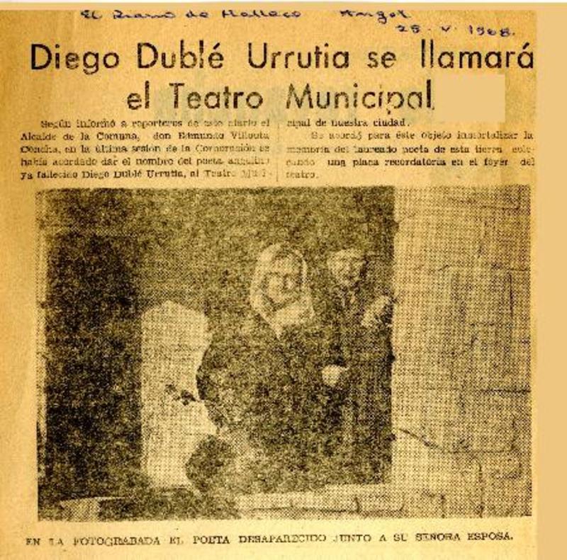 Diego Dublé Urrutia se llamará el Teatro Municipal. [artículo]