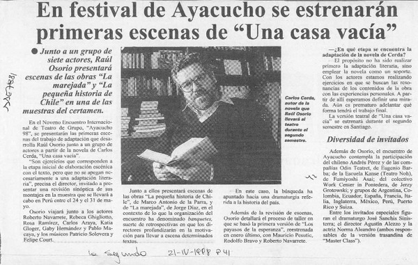 En Festival de Ayacucho se estrenarán primeras escenas de "Una casa vacía" [artículo].