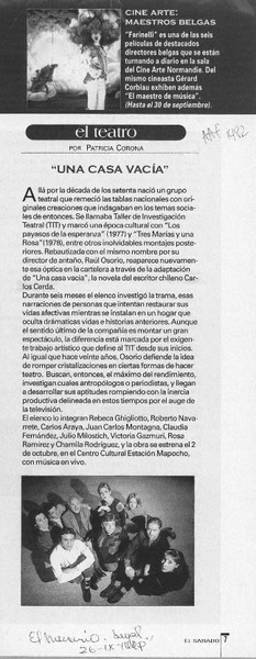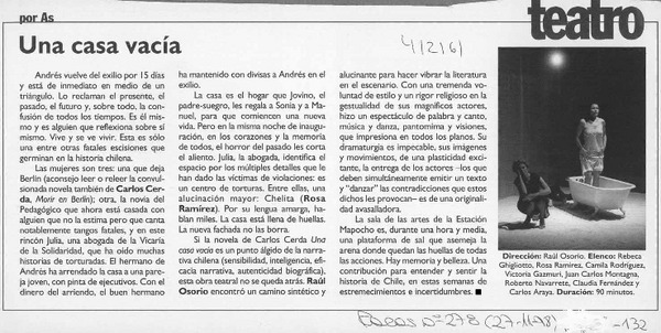 "Una casa vacía", desgarro actoral y gran energía física [artículo] Carola Oyarzún L.