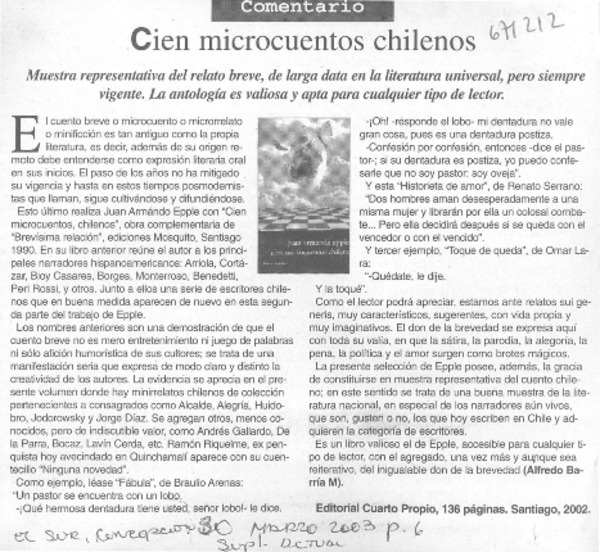 Cien microcuentos chilenos [artículo] Alfredo Barría M.