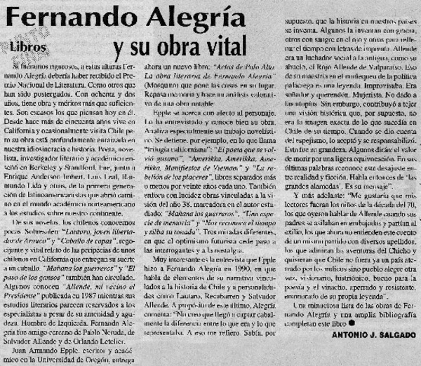 Fernando Alegría y su obra vital [artículo] Antonio J. Salgado.