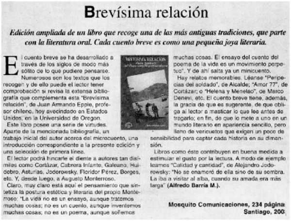Autores chilenos - Epple, Juan Armando - Brevísima relación