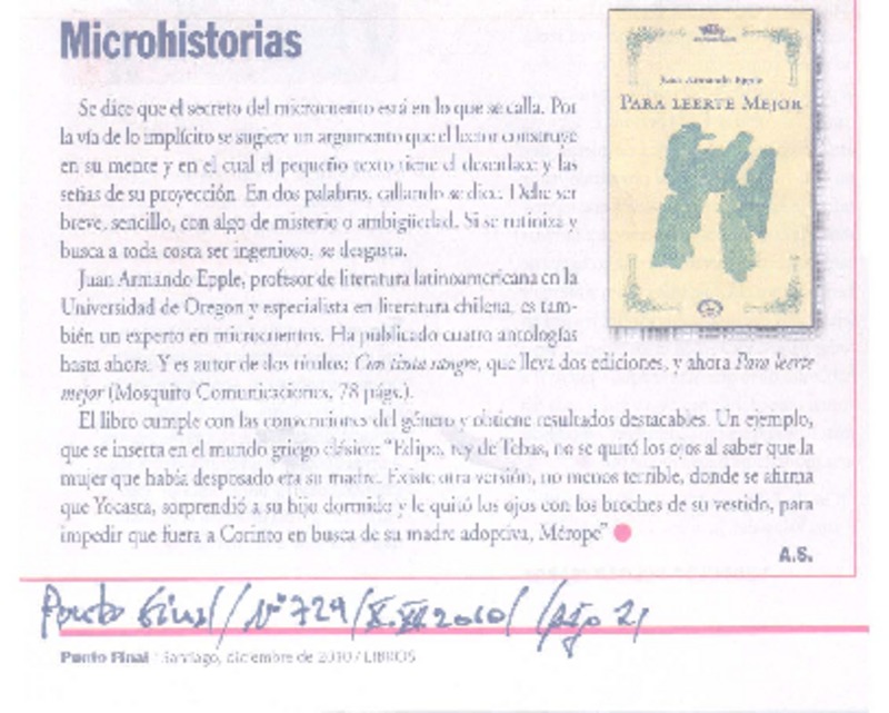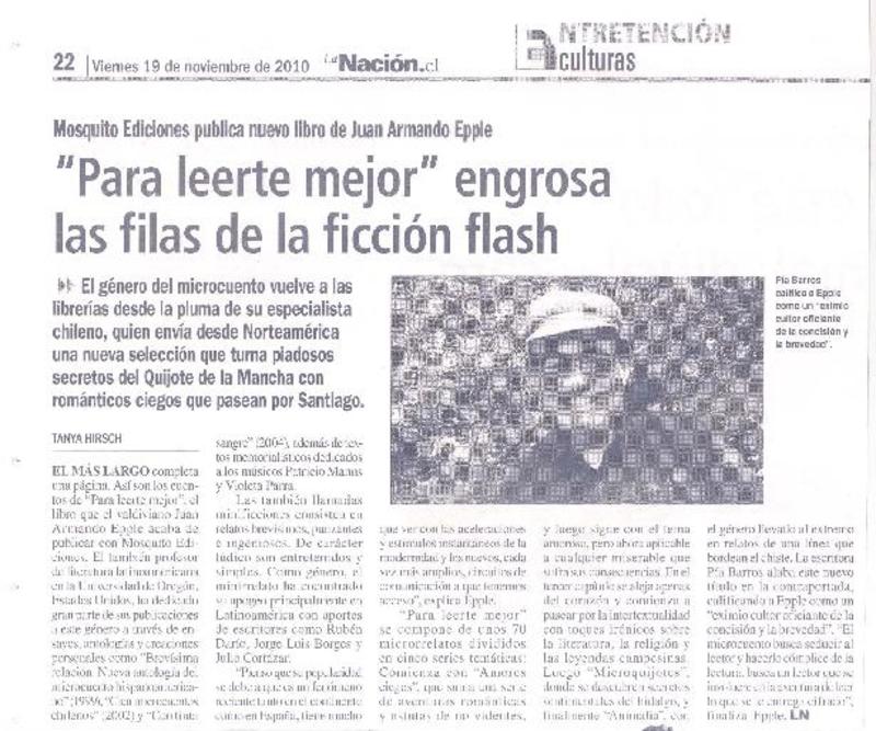 "Para leerte mejor" engrosa las filas de la ficción flash [artículo] Tanya Hirsch.