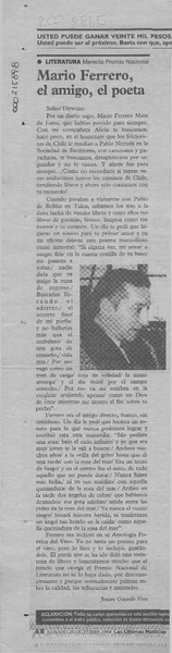 Mario Ferrero, el amigo, el poeta [artículo] Jenaro Gajardo Vera.